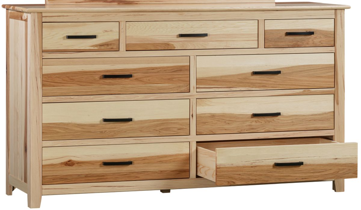 This Gallagher Dresser showcases timeless craftsmanship with a rustic yet refined appeal. Made from solid hickory wood with a Natural finish, it highlights the wood’s rich grain and durability. Featuring smooth-gliding drawers with sleek metal hardware, this dresser offers ample storage while adding warmth and character to any bedroom.Read More