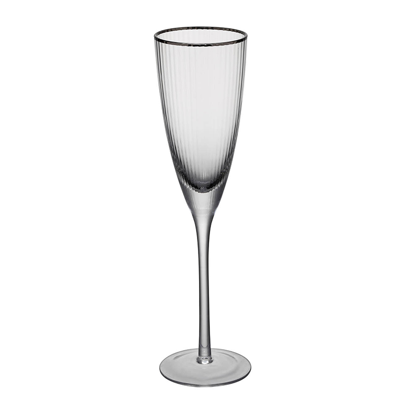 Fine stemware is always worth a toast of appreciation. This champagne flute from the Felicia Collection makes a statement with its silky striped texture and a subtle rim of elegant silver around the lip. This flute is ideal for everyday use and special occasions alike.Read More
