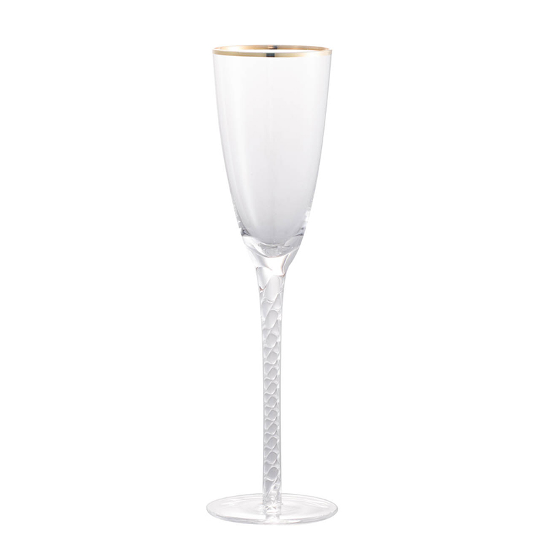 Champagne-worthy occasions deserve only the best stemware. This flute from the Felicity Collection features a stem that glimmers in the light thanks to its bubble texture, sure to catch the eye and draw compliments from guests. A ring of gold tops the rim for an added touch of glamour.Read More