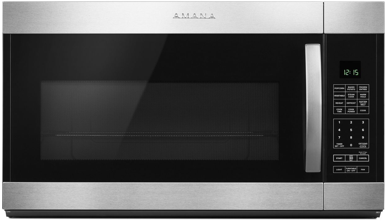 This 1.9 Cu. Ft. Amana® Over-the-Range Microwave warms up meals like that family-sized lasagna. While Sensor Cooking automatically adjusts the cook time, so you can spend less time on guesswork. If you're in the mood for something light, our Steam Cooking microwave lets you cook rice, fish or veggies right in the microwave with our Optional Steamer.