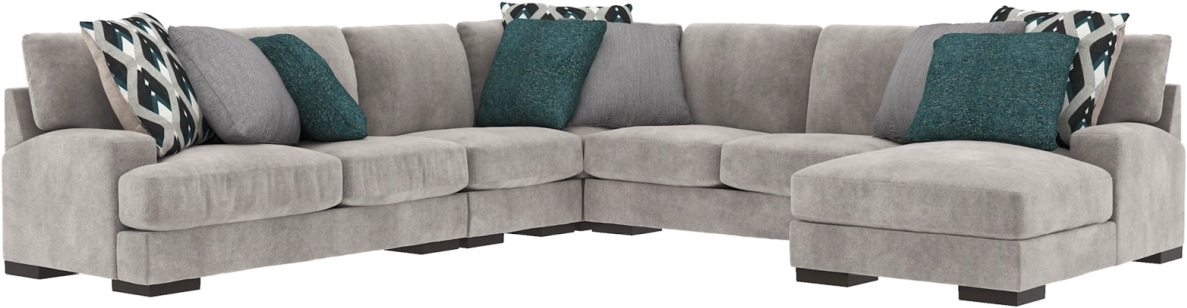 Includes 5 pieces: right-arm facing corner chaise, armless loveseat, armless chair, left-arm facing loveseat and wedge