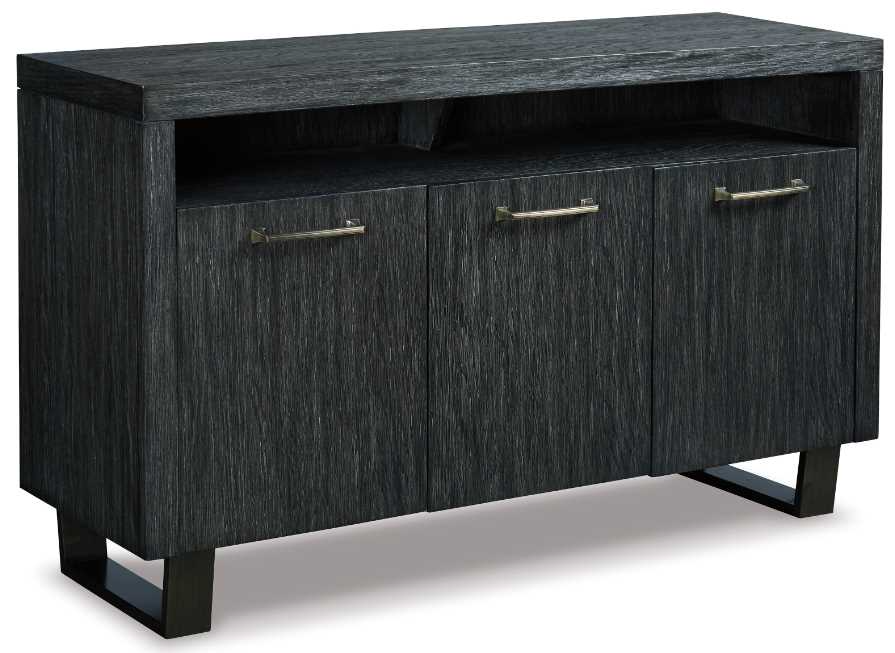 Strikingly simple but wonderfully detailed, this high-design sideboard deserves to be center stage. A Trio of flat-panel cabinet doors with sleek, linear hardware proves that less can be so much more. Along with an open cubby for form and function, this server includes adjustable shelves to accommodate your needs.Read More