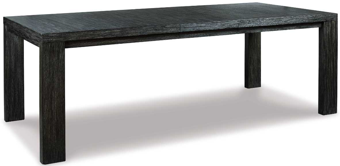 Have your fill of both with this dining room extension table. Strikingly simple but with a “hefty” presence, this ultra clean-lined dining table is loaded with character that includes a wire-brushed texture with a complex blackened finish and contrasting gray undertones.Read More