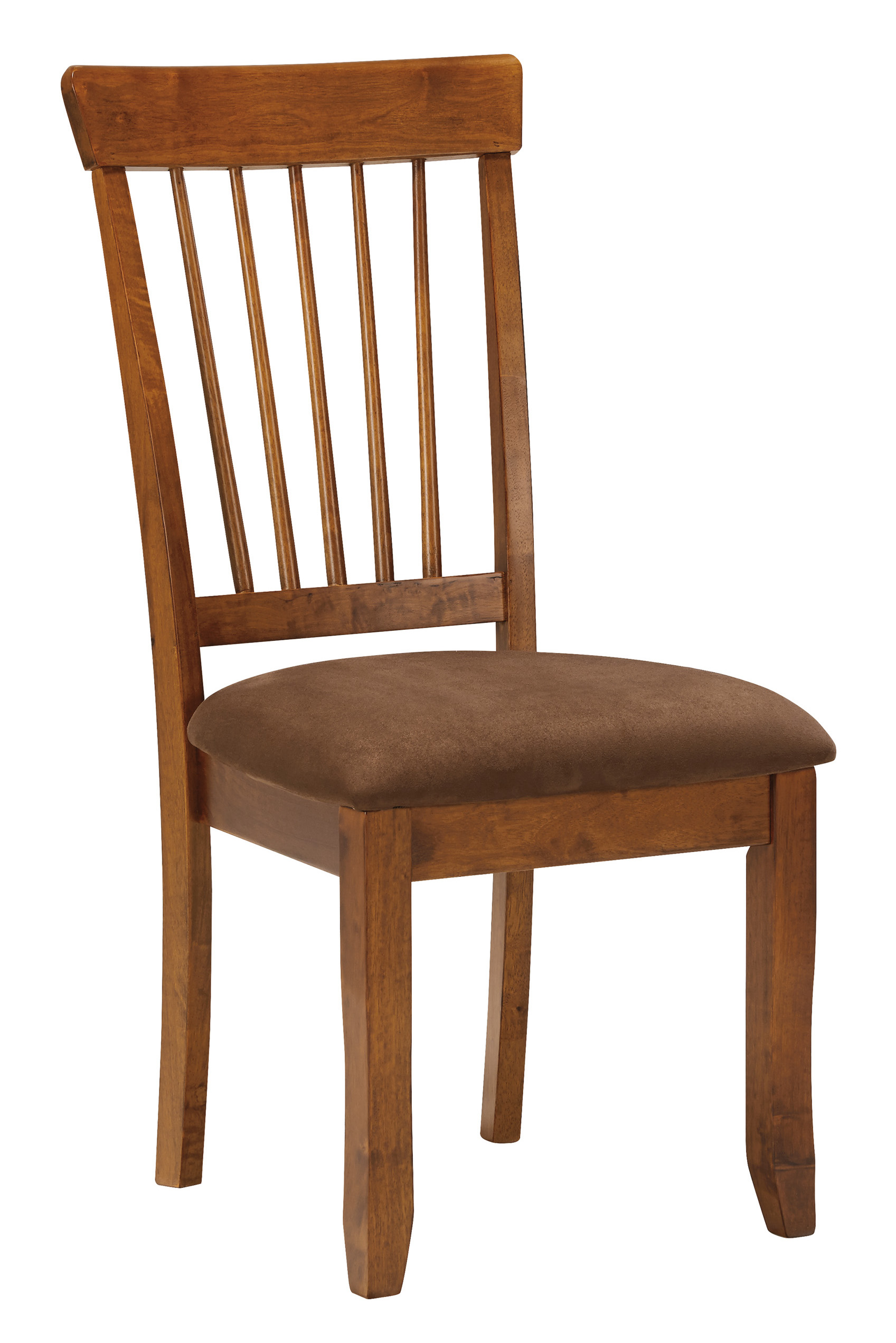 This handsome chair serves up elegance family style. The rich finish and simple profile are always in vogue, whether your aesthetic is vintage, country or traditional. Upholstered side chair has a classic spindle back and seat covered in easy-to-maintain microfiber.