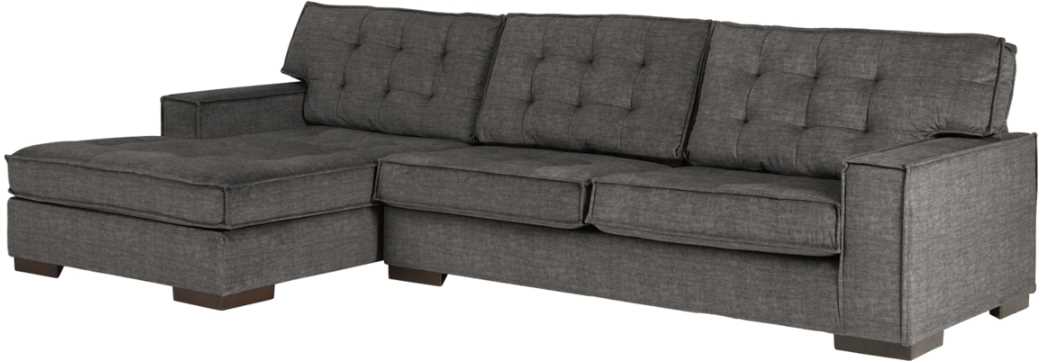 Bringing ultra-contemporary flair to the art of modern interiors, this sectional in charcoal gray velvet is so on point. Brilliantly simple box cushions and wide track arms are outlined with distinctive flange welting for a high-design aesthetic. Tufted cushions add to the sumptuous look and feel for an indulgent experience made to be comfortably affordable.Read More