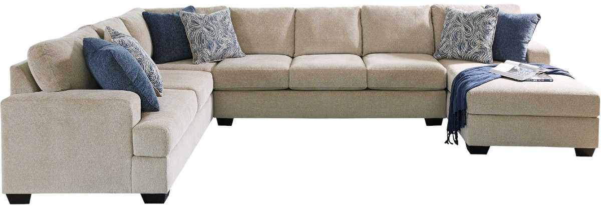 Includes 4 pieces: right-arm facing corner chaise, armless sofa, left-arm facing loveseat and wedge