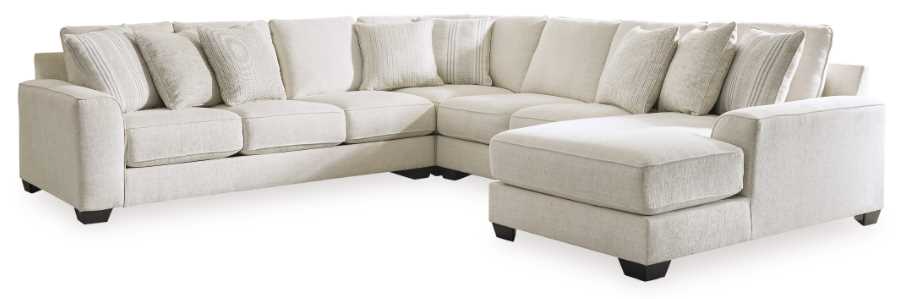 Includes 4 pieces: left-arm facing sofa, armless loveseat, wedge and right-arm facing corner chaise