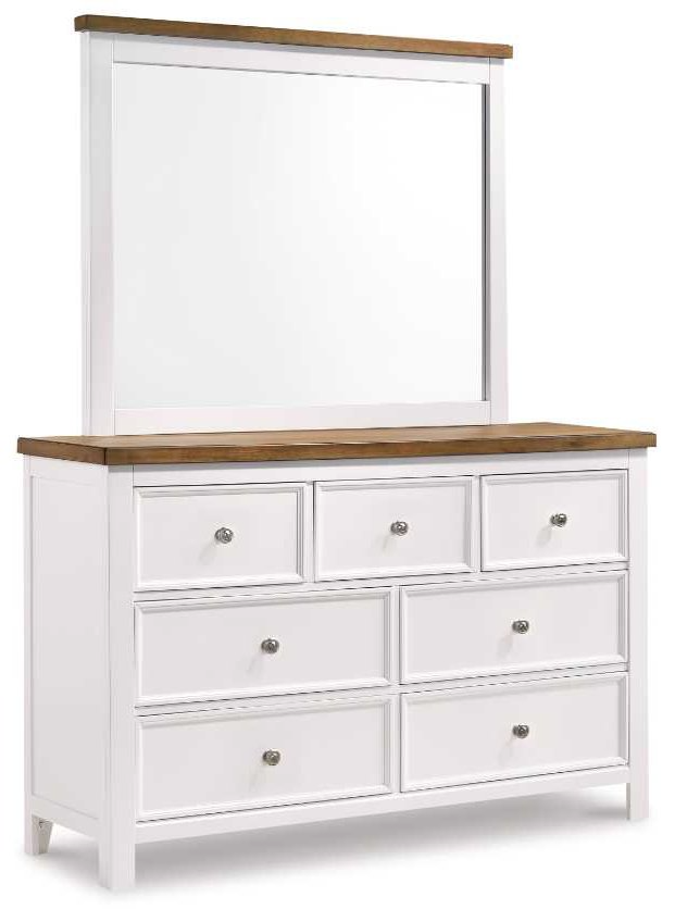 Cottage quaint styling and quality construction make this dresser with a mirror a dream come true. A streamlined look and a two-tone finish marry simplicity with timeless design. Westconi is designed with a simplicity that defines this timeless design.Read More