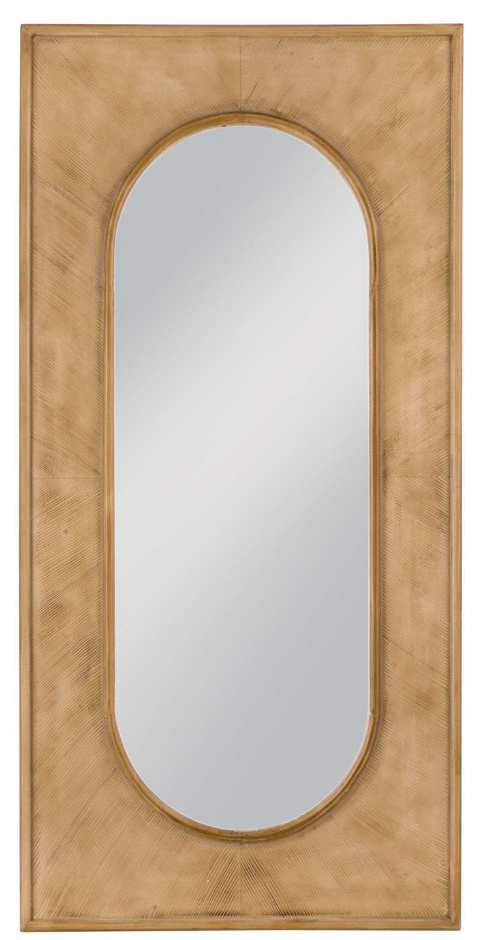 The Liam Floor Mirror features a unique blend of modern design and boho aesthetics, with a rectangular frame surrounding an oval mirror. The starburst-like wood detailing adds a touch of sophistication and visual interest to the piece.Read More