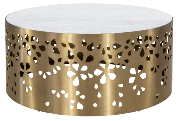 The Nora Cocktail Table showcases a refined aesthetic, blending elegance with modern design. Its round silhouette is supported by a stunning laser-cut metal base finished in brushed gold, exuding sophistication.Read More