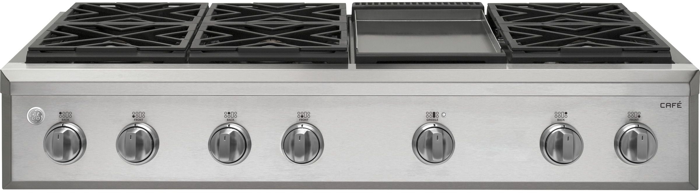 Café™ 48" Professional Gas Rangetop- Stainless Steel with 6 burners, griddle and reversible burner gratesRead More