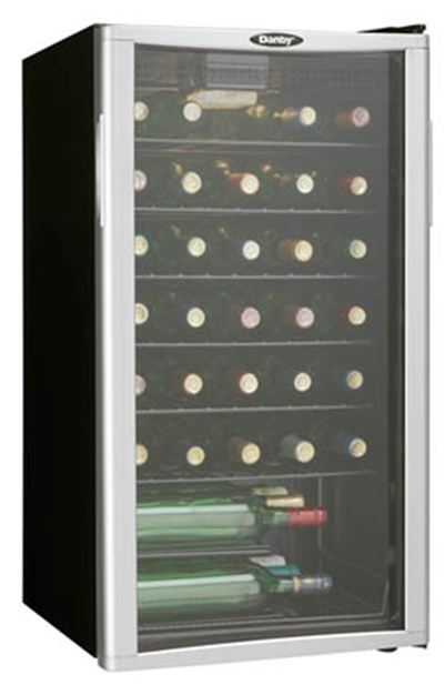 Danby® 18" Free Standing Wine Cooler-Black with Platinum with 35 bottle capacity, interior display light and auto cycle defrostRead More