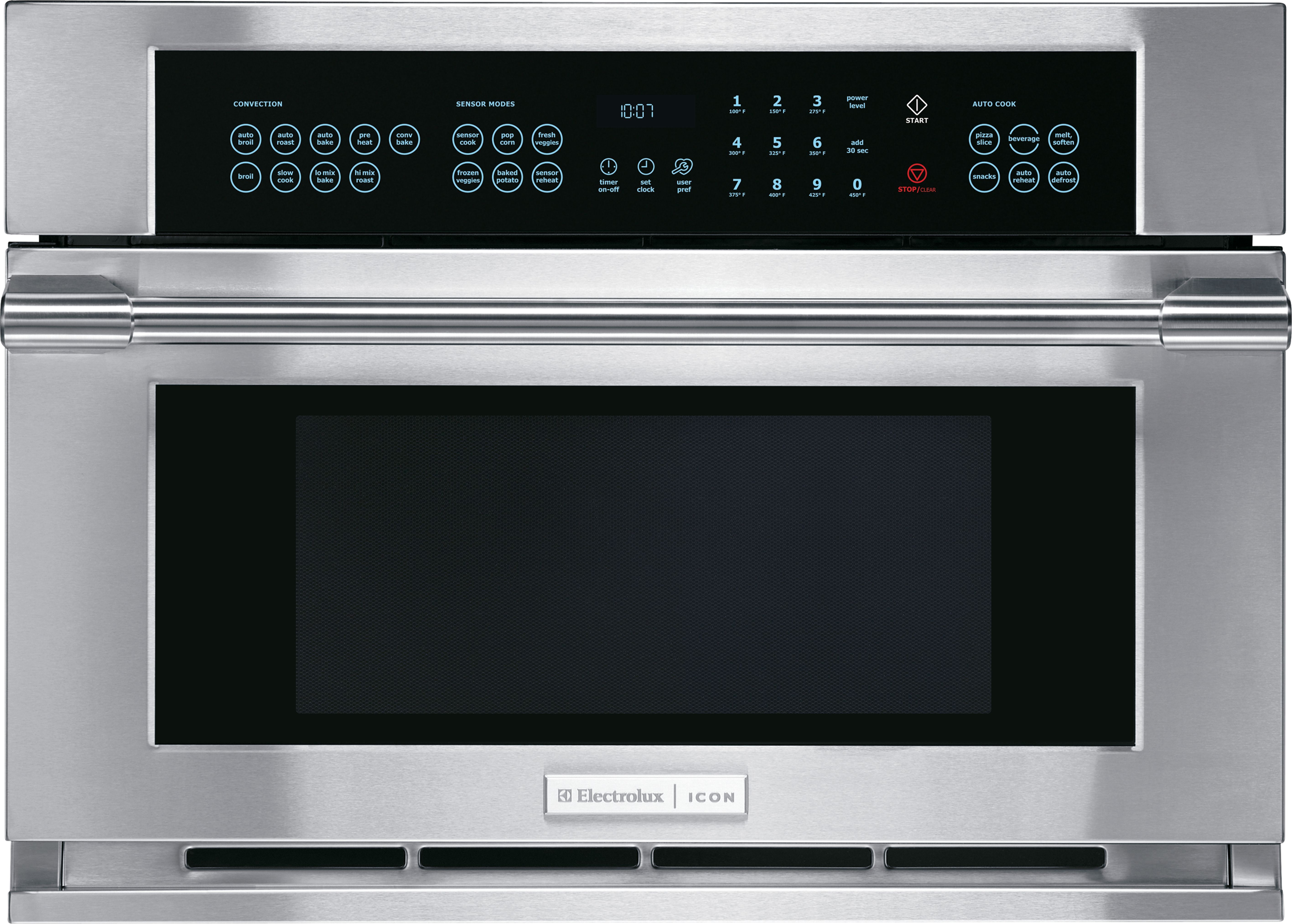 Pre-programmed settings give you the versatility to combine both microwave cooking and convection heat. Sleek control panel illuminates with just a touch and fades away after an option is selected.Read More