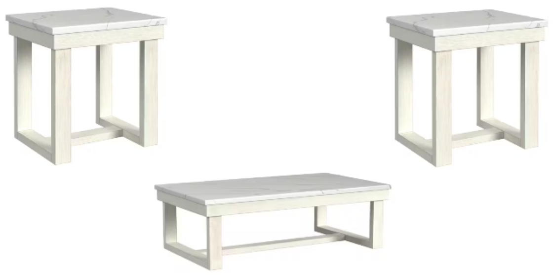 Elevate your living space with the elegance of the Catilin 3PC Occasional Table Set. The brushed white finish radiates a gentle charm, while the faux marble tops add a touch of timeless sophistication.Read More