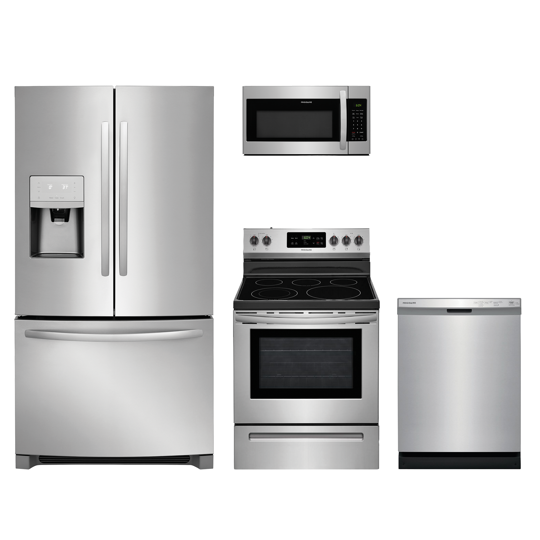 Frigidaire® 4 Piece Kitchen Package-Stainless Steel with a French door refrigerator, free standing electric range, built in dishwasher and over the range microwaveRead More