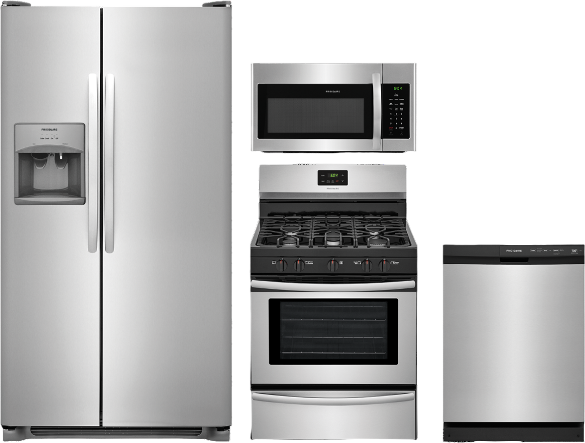 Kitchen essentials galore! The 25.5 cu. ft. capacity fridge with PureSource® water and ice filtration, Store-More™ door bins and shelves, and adjustable storage is all the fridge you could ask for. The gas range with stunning and functional corner-to-corner grates and unique oval burner will assist you with all your meal prep. Above the range you’ll find a spacious microwave with cooktop LED lighting, myriad cooking options, and easy to clean glass turntable. Finally, the self-cleaning, ENERGY STAR® certified, large capacity washer with space for 14 place settings rounds out this gorgeous kitchen set from Frigidaire.