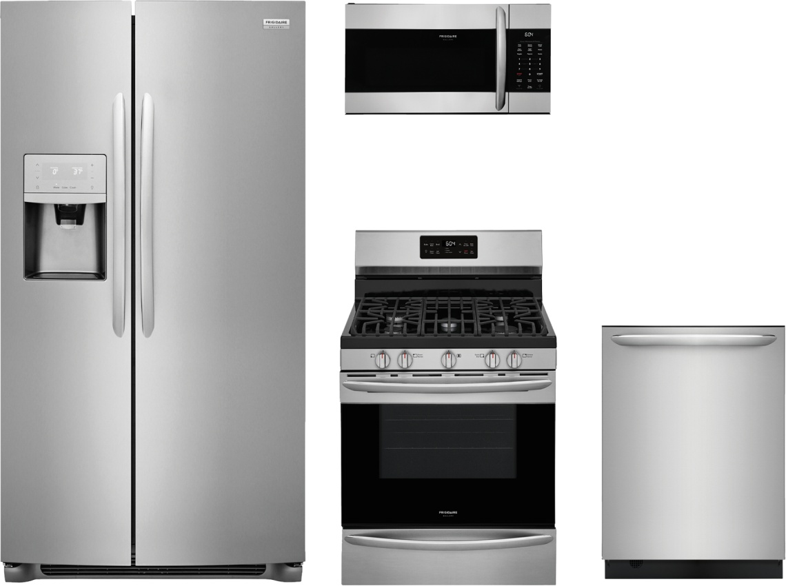 Frigidaire Gallery® 4 Piece Kitchen Package-Stainless Steel with a Counter Depth Side-By-Side Refrigerator, Freestanding Gas Range, Built In Dishwasher, and Over The Range MicrowaveRead More