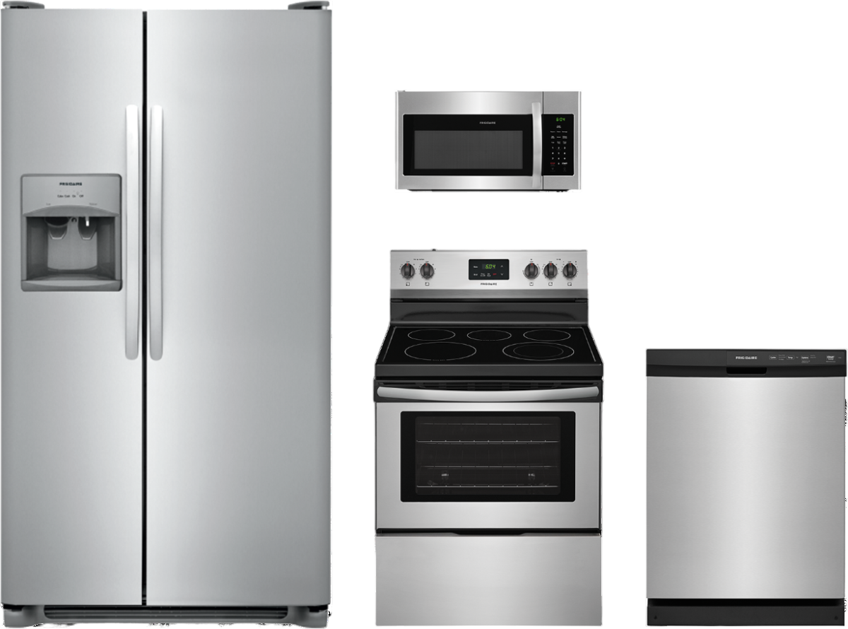 Frigidaire Professional® 4 Piece Kitchen Package-Stainless Steel with a counter depth french door refrigerator, free standing electric range, built in dishwasher and over the range microwaveRead More