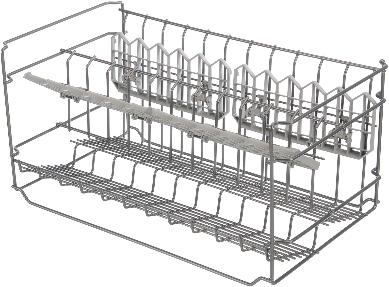Special basket holds cups and long-stemmed glasses for a thorough cleaning