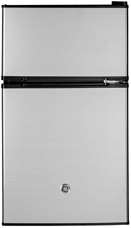 GE 3.1 Cu Ft. Compact Refrigerator-Stainless Steel with in the door can rack and glass shelvesRead More