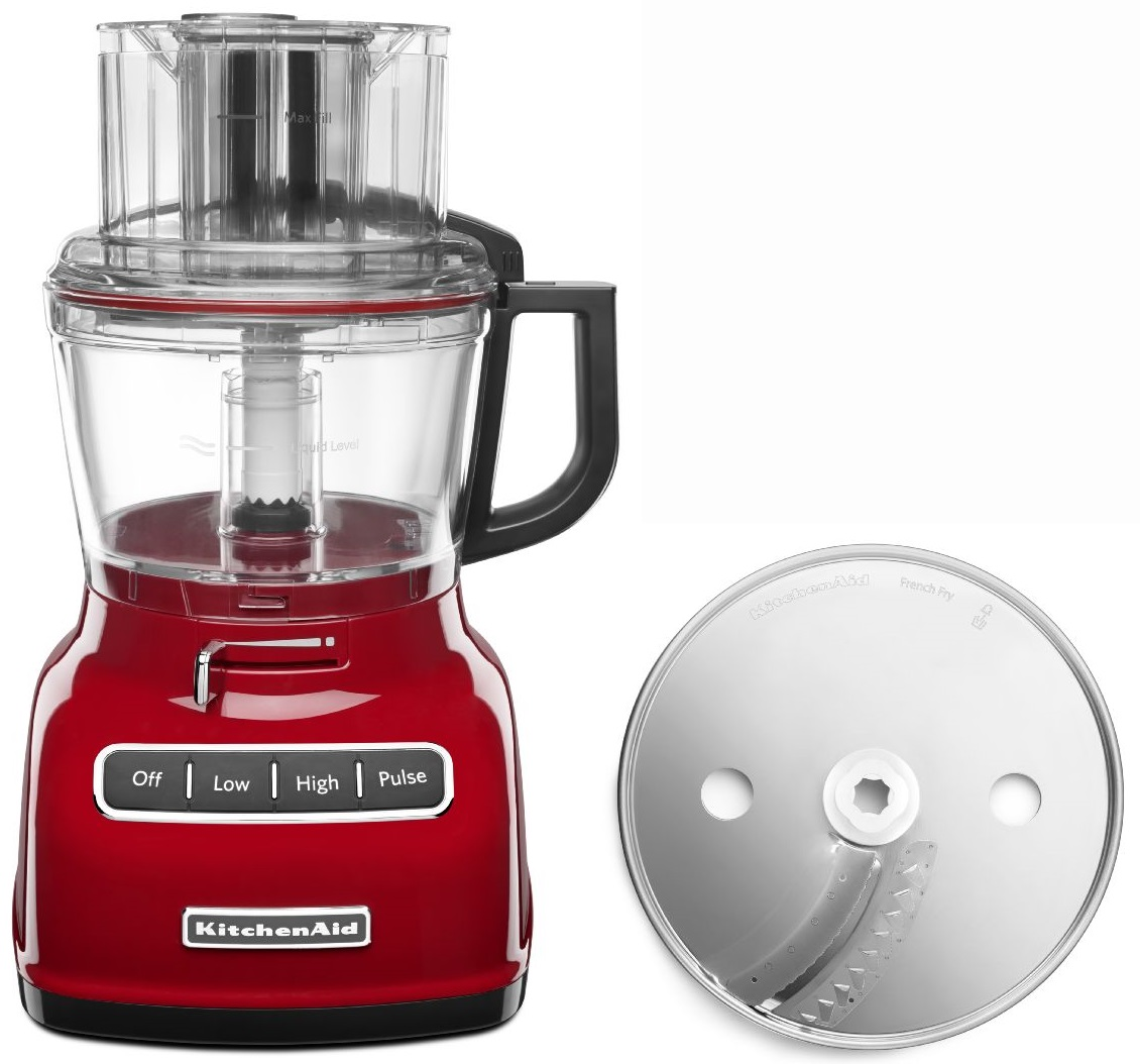 The KitchenAid® 9-Cup Food Processor with the exclusive ExactSlice™ system, slices from thick to thin with one slide of the lever. The multiple optimized speeds and distinctly designed stainless steel blades help in prepping food. Slice, shred, knead, puree and chop food quickly and easily. This model also features a french fry disc.