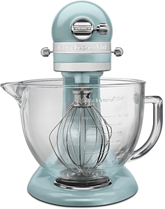 The KitchenAid® Artisan® Design Series 5 Quart Tilt-Head Stand Mixer features a premium metallic finish and elegant glass mixing bowl, adding radiance to any kitchen. It also offers the capacity to make up to 9 dozen cookies in a single batch and 10 speeds to thoroughly mix, knead and whip ingredients quickly and easily. For even more versatility, use the power hub to turn your stand mixer into a culinary center with over 10 optional hub powered attachments, from food grinders to pasta makers and more.Read More