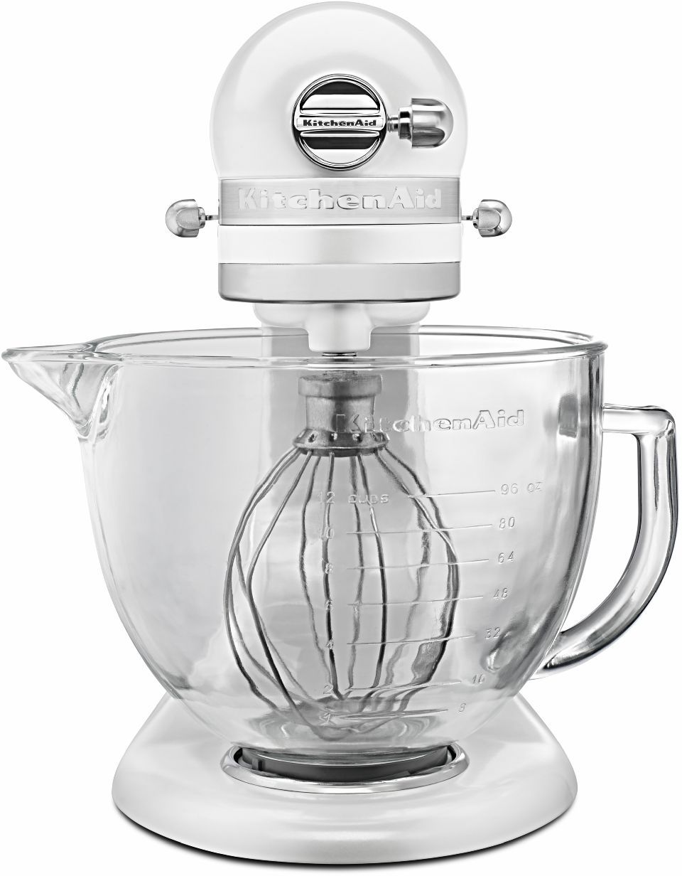 The KitchenAid® Artisan® Design Series 5 Quart Tilt-Head Stand Mixer features a premium metallic finish and elegant glass mixing bowl, adding radiance to any kitchen. It also offers the capacity to make up to 9 dozen cookies in a single batch and 10 speeds to thoroughly mix, knead and whip ingredients quickly and easily. For even more versatility, use the power hub to turn your stand mixer into a culinary center with over 10 optional hub powered attachments, from food grinders to pasta makers and more.Read More
