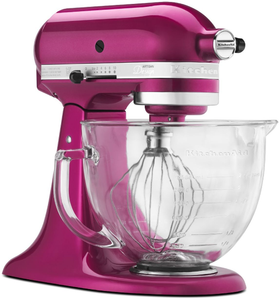 The KitchenAid® Artisan® Design Series 5 Quart Tilt-Head Stand Mixer features a premium metallic finish and elegant glass mixing bowl, adding radiance to any kitchen. It also offers the capacity to make up to 9 dozen cookies in a single batch and 10 speeds to thoroughly mix, knead and whip ingredients quickly and easily. For even more versatility, use the power hub to turn your stand mixer into a culinary center with over 10 optional hub powered attachments, from food grinders to pasta makers and more.Read More