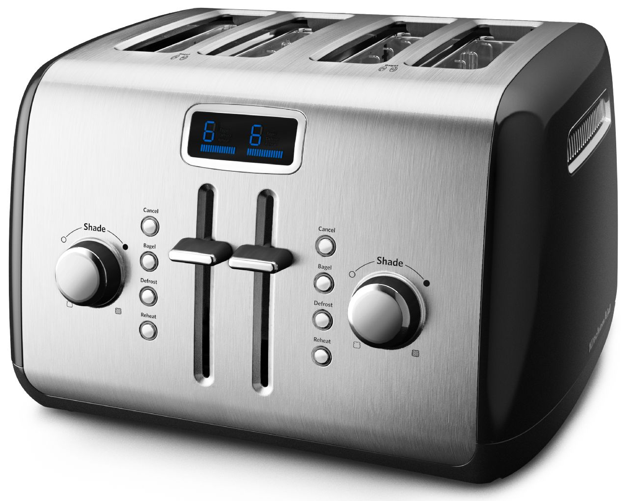 Sleek style meets ultimate functionality with this KitchenAid® 4-Slice Toaster. Use the toaster’s extra-wide slots to precisely toast bread or bagels, defrost and toast frozen food, quickly reheat toasted food or keep toasted food warm for up to one minute. And the digital display’s progress bar lets you know just when your item will be ready to enjoy.Read More