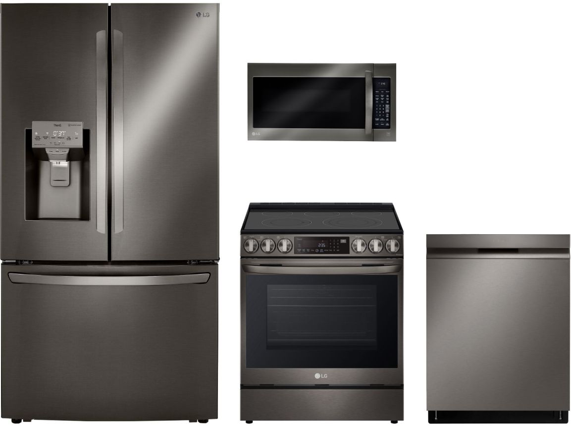 LG 4 Piece Black Stainless Steel Kitchen Package with french door refrigerator, silde in electric range, built in dishwasher and over the range microwaveRead More