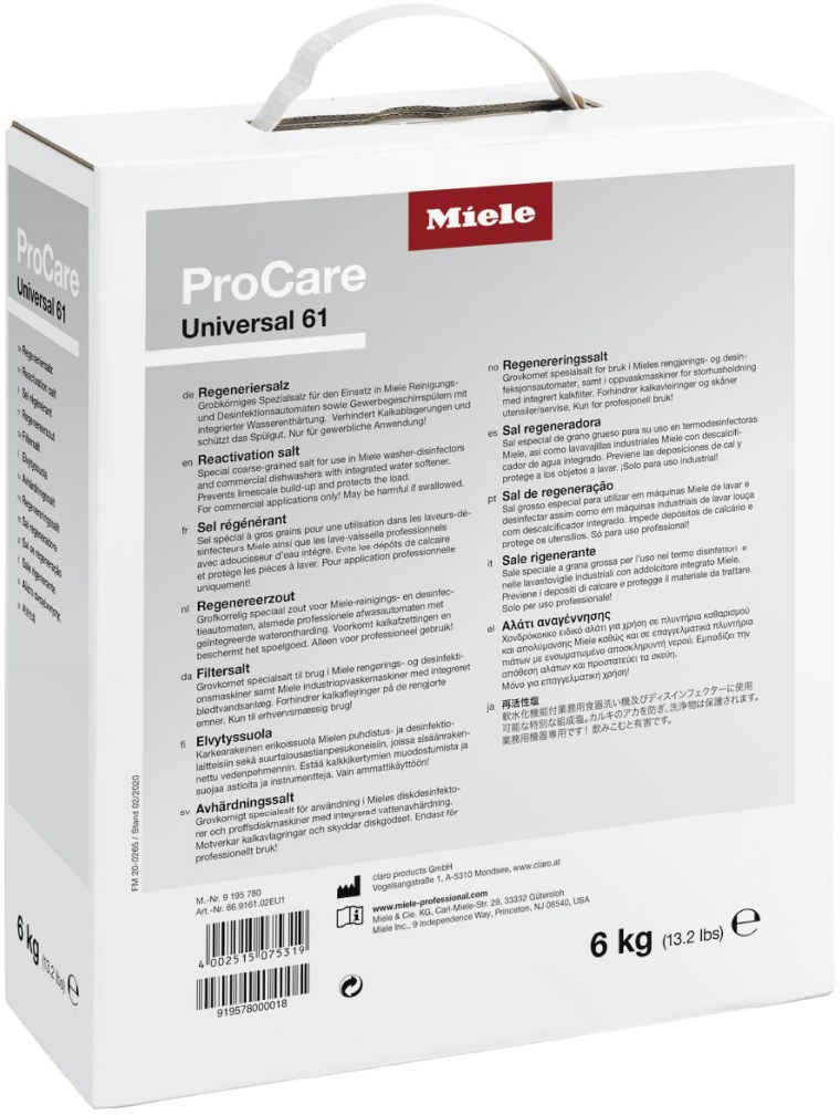 Regeneration salt, 3 x 2 kg (13.2 lb total) for regeneration of the integrated water softener. Prevents calcium deposits and protects wash itemsRead More