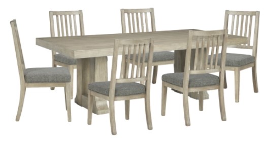 Includes dining table and 6 side chairs