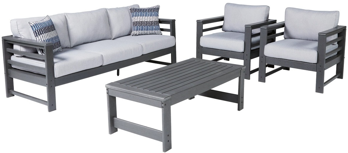 Indulgently comfortable furniture shouldn't be limited to inside spaces. Create your own outdoor oasis with this seating package. A study in form and function, the trend-right charcoal gray frames are crafted for durability and weather resistance. Cushions wrapped in high-performing Nuvella® fabric are comfortable and carefree.Read More