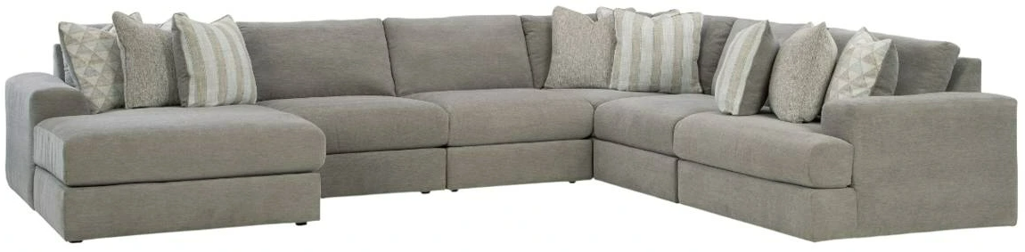 Includes 6 Modular Pieces: Left-arm facing corner chaise, 3 armless chairs, wedge, and right-arm facing corner chair