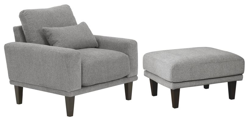 This 2-piece chair and ottoman set in sterling gray makes designer style so amazingly affordable? This chic, space-conscious ensemble is dressed to impress with box cushions, track arms, tapered legs and a lumbar pillow to help you master that mid-century modern aesthetic you love. What a way to bring your space into perfect harmony—without breaking the bank.Read More
