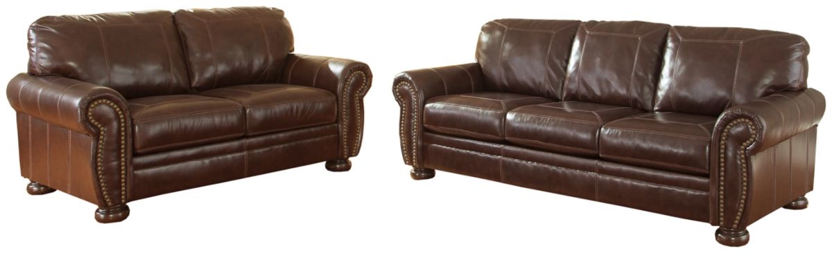 When you find comfort, quality and exceptionally great looks—all handsomely priced—it’s a banner day. That’s what makes this sofa and loveseat set such a welcome addition. Rest assured, its interior seating area, armrests included, is wrapped in high-quality leather rich with natural tone variation.Read More