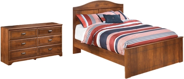 Includes full panel headboard, footboard, rails and dresser