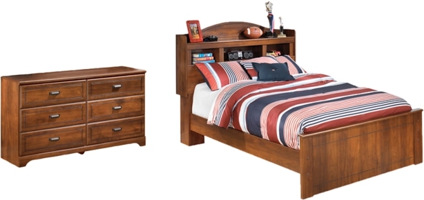 Includes full bed (with bookcase headboard, footboard and rails) and dresser