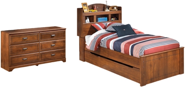 While they might be outgrowing their clothes faster than you like, rest assured this comfortably classic bedroom set will suit them for years to come. Clean, sophisticated lines blend with a warm and rustic feel, enhanced by a replicated timber cherry grain finish with great staying power. Top-shelf display space and three cubbies offer room for self-expression. Pullout trundle makes for hassle-free sleepovers.Read More
