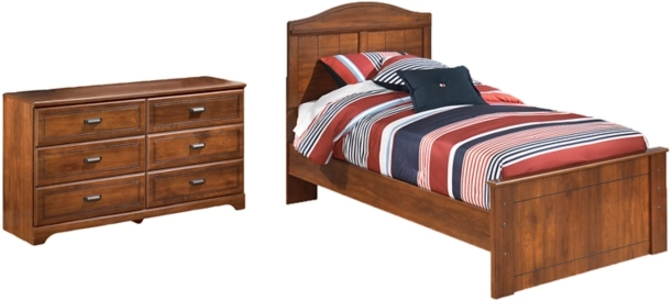 Includes twin panel headboard, footboard, rails and dresser