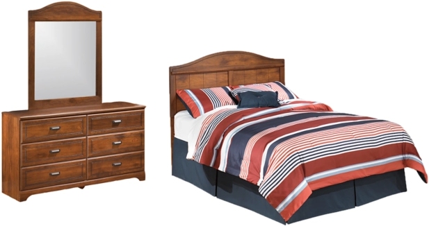 Includes full panel headboard and 6-drawer dresser with mirror