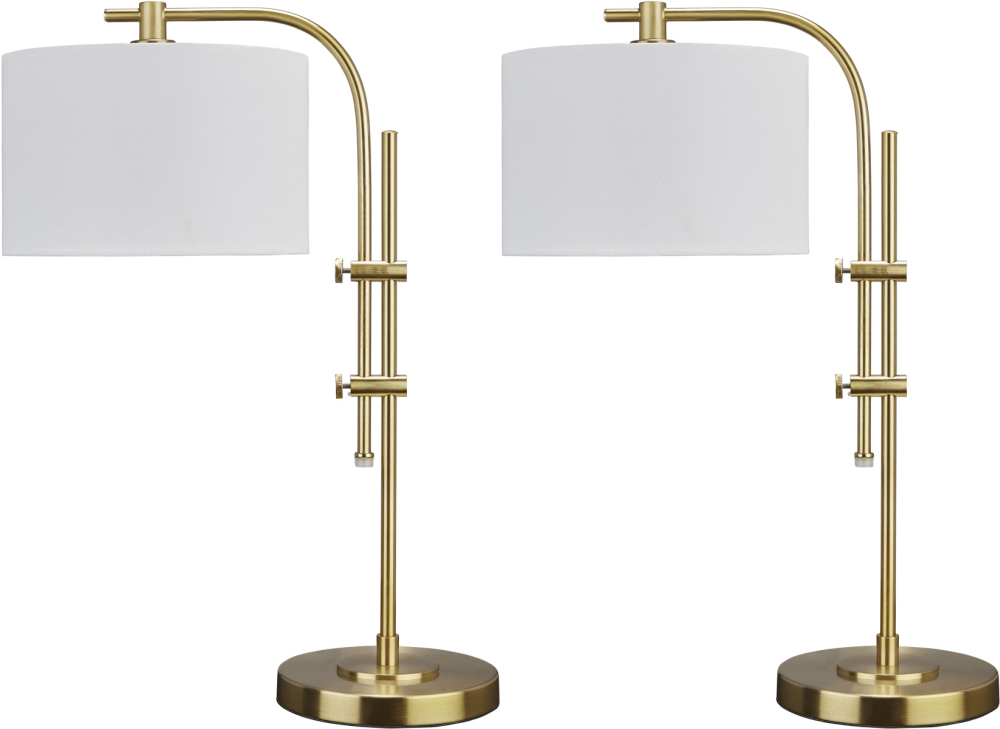 This metal desk lamp features a beautiful brass-tone finish that adds a rich, golden accent to your living space. The lamp is elegantly curved with soft edges, and is adjustable to provide targeted illumination. Topped off with a crisp white drum shade, this lamp provides a subtle and appealing contemporary design wherever placed.Read More