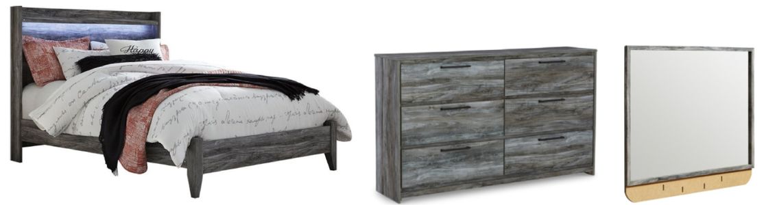 When merged in just the right way, rustic and industrial styles can make one happy marriage. Case in point: this blissful bedroom set. A refined take on barn board beauty, its complex, replicated wood grain showcases hints of burnt orange and teal tones for a sense of weatherworn authenticity. Love to read in bed? You’re sure to find the overhead LED light strip on the headboard such a bright idea. A plethora of storage options await your wardrobe needs.