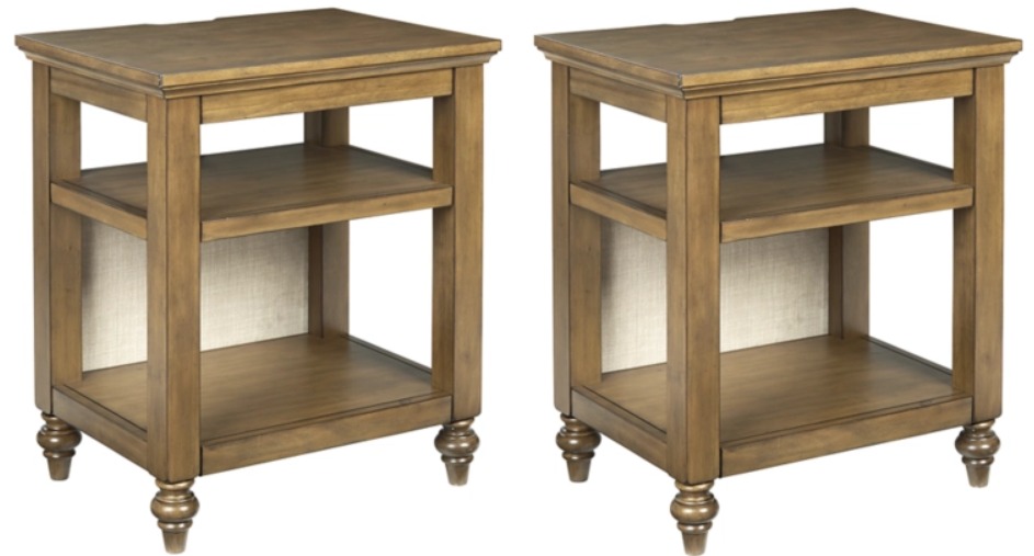 Dressed to impress with a beige fabric back panel—for something new and something you—this 2-piece accent table set masters the art of transitional design. The clean, simply chic profile is beautified with a warm brown finish and elegantly turned feet. USB plug-ins make this accent table that much more useful.Read More