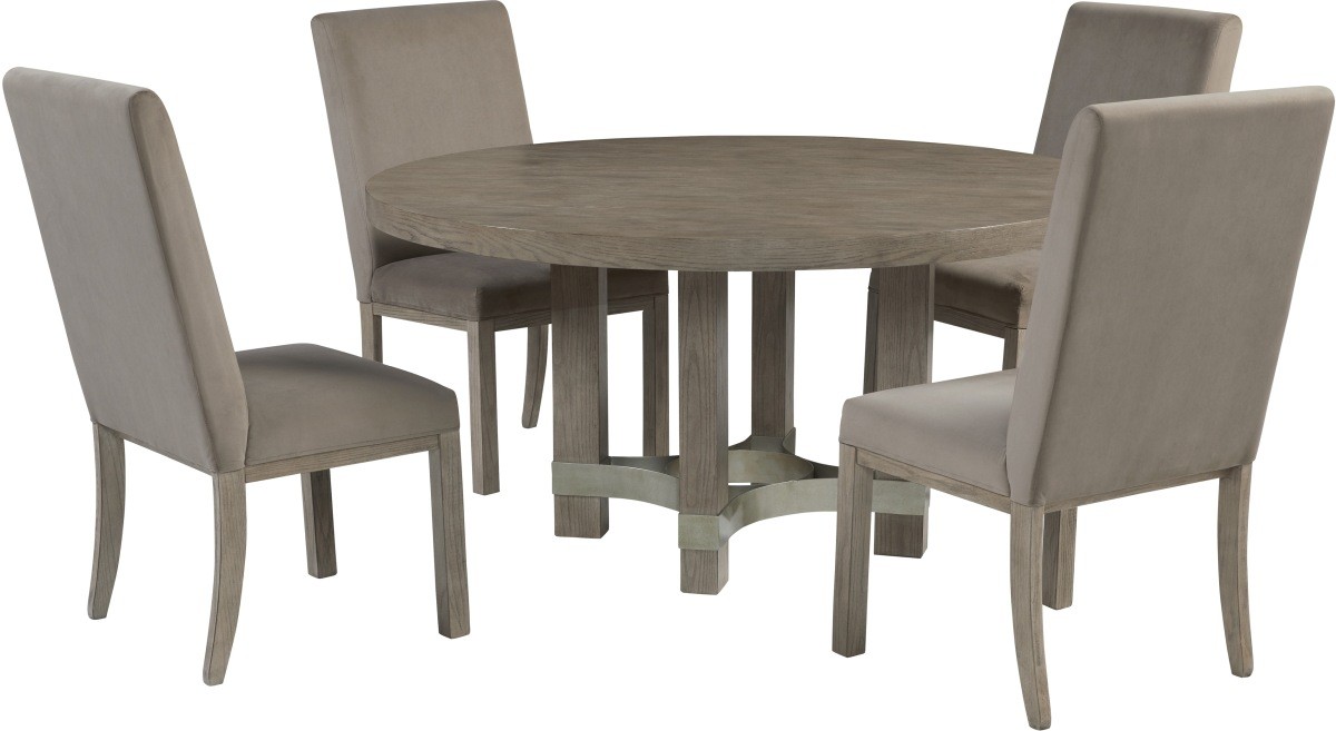 Includes round dining table and four upholstered side chairs