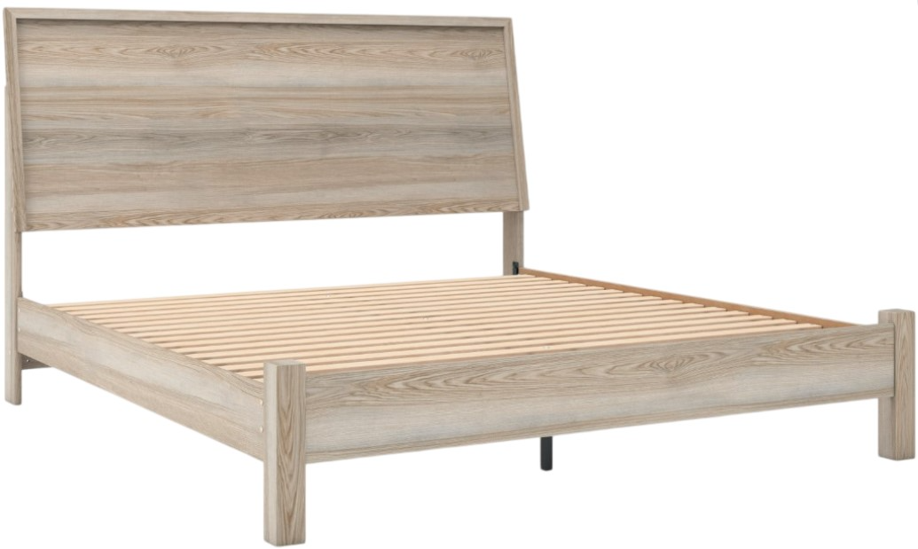 Modern meets neutral and sophisticated in this queen panel bed. Its clean lines and open slat headboard wake up your bedroom with eye-catching appeal. The natural finish and subtle replicated wood grain speak casual simplicity, creating a smart and stylish bedroom retreat. A refreshing take on style, indeed.Read More