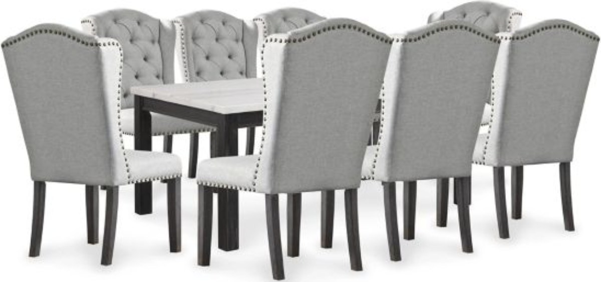 Includes dining table and 8 chairs