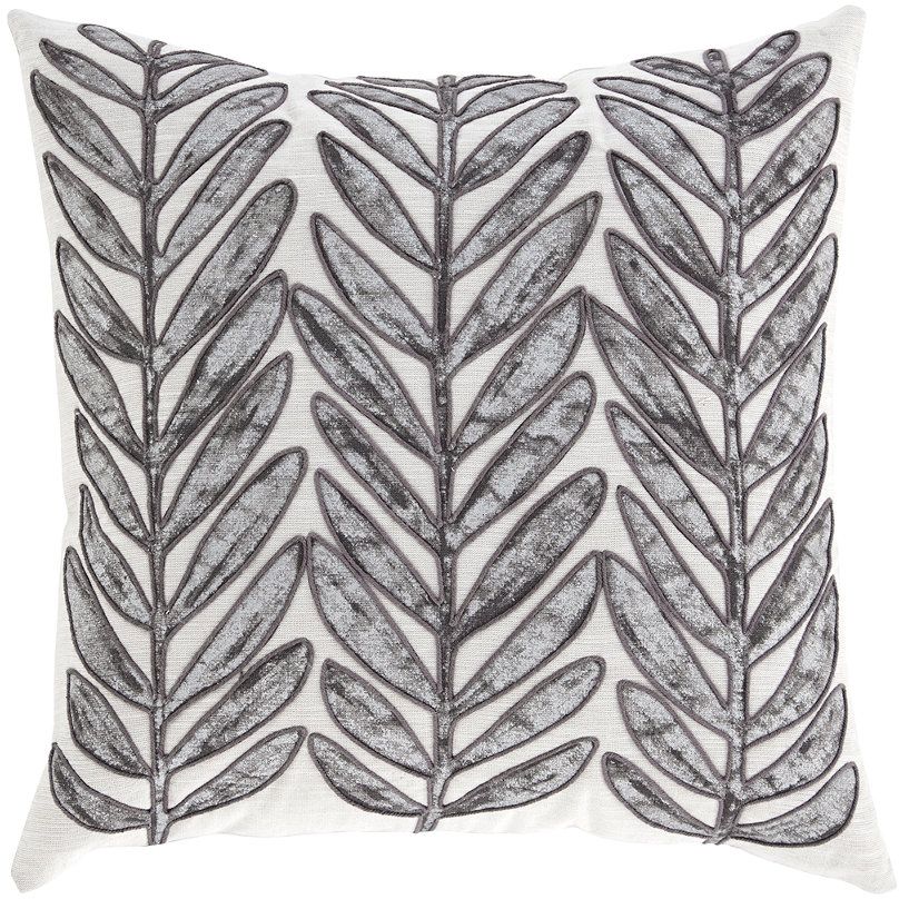 Blending soothing shades of taupe and silver with an artful leaf design, the Masood toss pillow is a natural fit. Cord outlining gives this earthy-elegant pillow a hint of cool texture.Read More