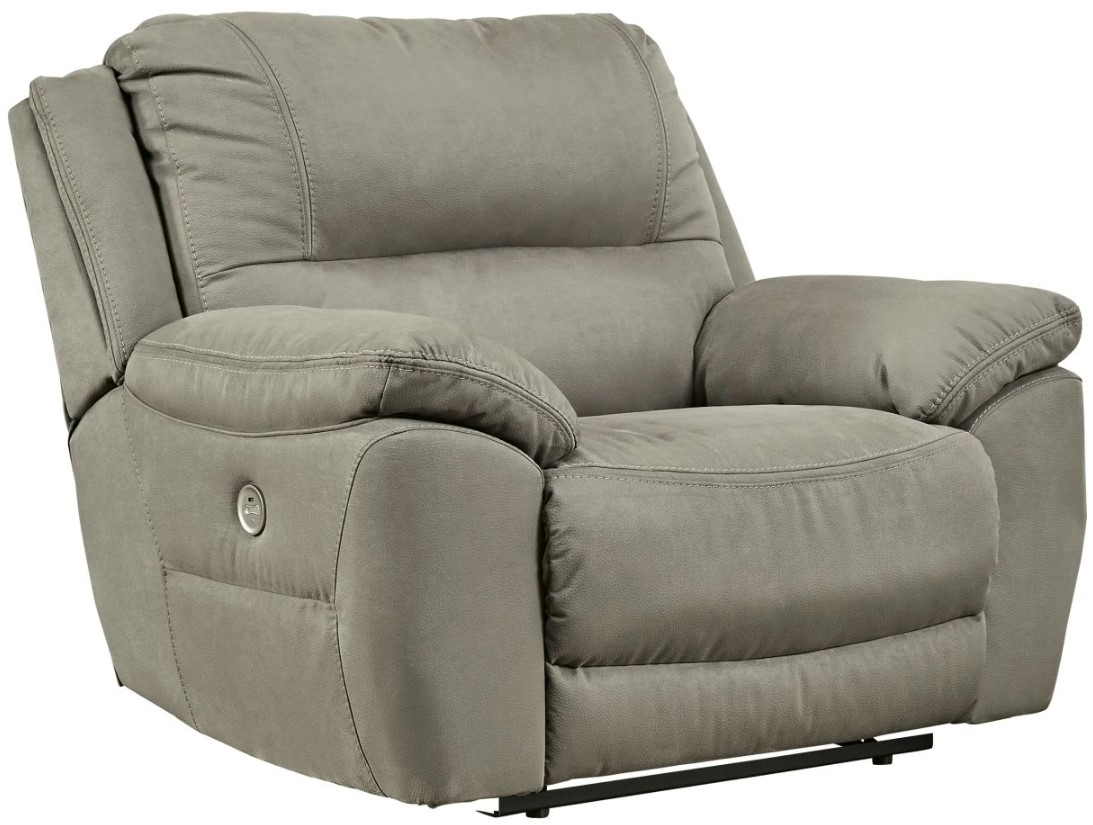Kick back, relax, and enjoy some sports on TV with this power oversized reclining chair. You will love its extra wide seat, double stuffed pillow top arms and soft-as-suede faux leather upholstery. The family-friendly dark gray color and creative stitching add panache.Read More
