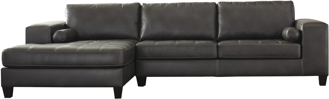 The word "plain" is not in this sectional's vocabulary. Low back seating and wide track arms make it ultra cool. Just enough soft padding in all the right places. Charcoal color faux leather with an embossed natural grain effect and matte finish is inspired by contemporary euro leather.Read More